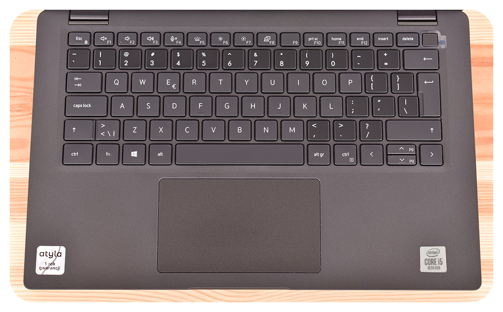 Klawiatura została przygotowana pod wygodną pracę w języku polskim – ustawiamy układ QWERTY i stosujemy dopasowane naklejki spolszczające, aby symbole na klawiszach w pełni zgadzały się z układem. Naklejki są cienkie i idealnie przylegają, dzięki czemu są praktycznie niewyczuwalne pod palcami i nie przeszkadzają w codziennym pisaniu. Wykonane z trwałego materiału, są odporne na ścieranie i zachowują estetyczny wygląd nawet przy intensywnym użytkowaniu. Laptop jest więc gotowy do pracy od razu po rozpakowaniu – bez stresu i dodatkowych kosztów.