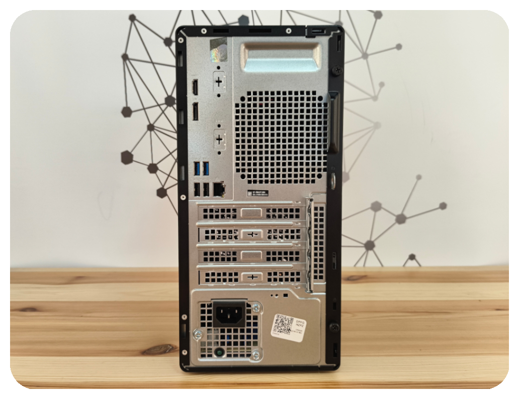 Obudowa Tower: Dell OptiPlex 7020 został zaprojektowany z myślą o wygodnym serwisie i rozbudowie. Pełnowymiarowa konstrukcja zapewnia lepszą cyrkulację powietrza, łatwy dostęp do podzespołów oraz możliwość dalszej rozbudowy (RAM, dyski, karty rozszerzeń), co czyni go praktycznym wyborem na lata.